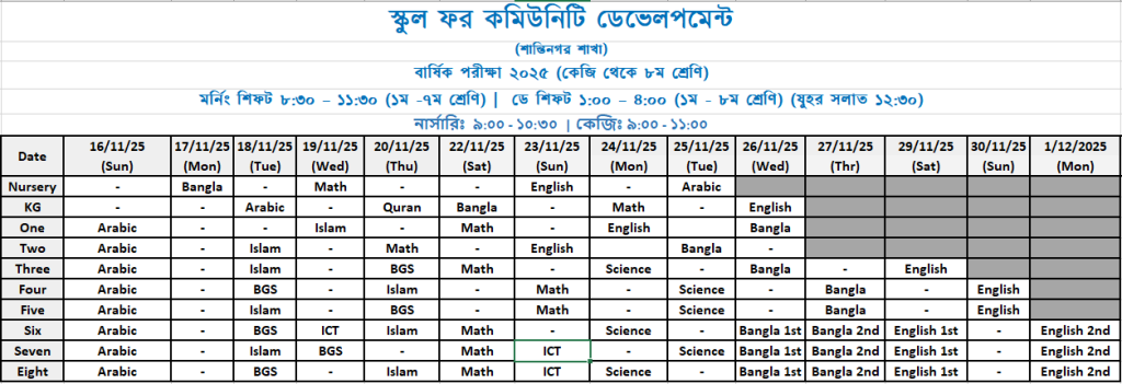 বার্ষিক পরীক্ষা ২০২৫ – রুটিন
